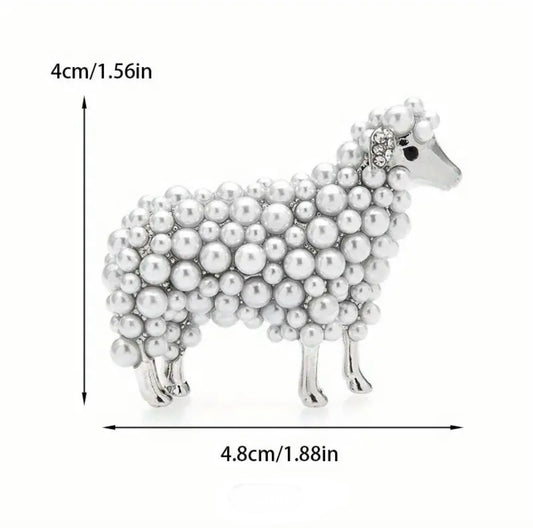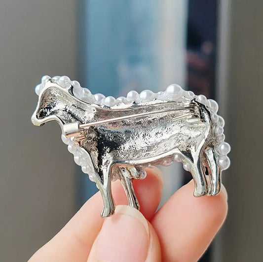 Silver-Pearl Lone Sheep Brooch/Lapel